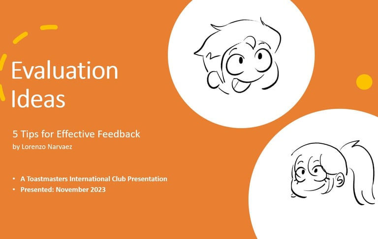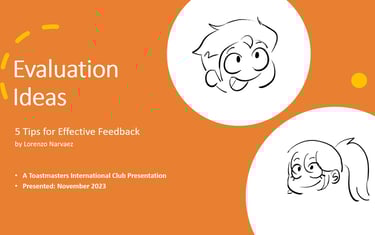 A Toastmaster illustrated presentation on providing better feedback to enhance evaluations for fellow members. Presented 11/07/2023.